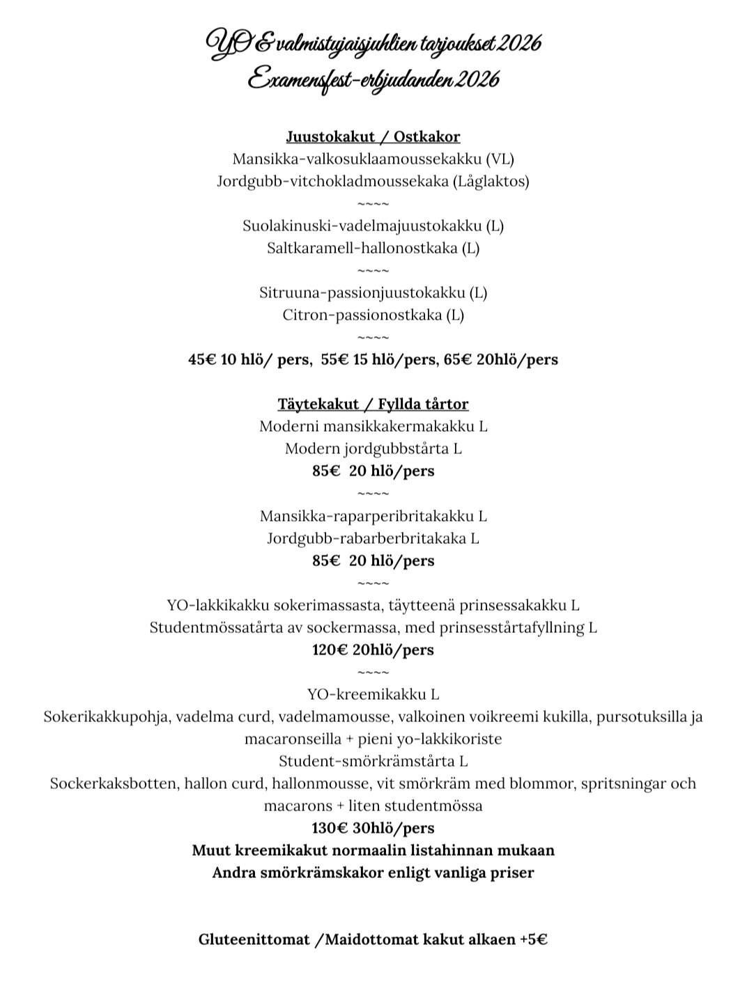 Yo-juhlatarjoukset / Studenterbjudanden 2026