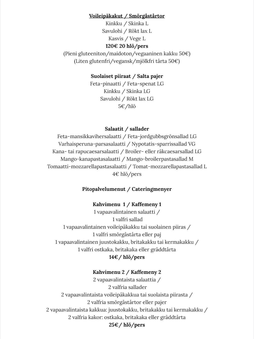 Meiltä saa myös muita leivonnaisia, pikkusuolaista, salaatteja, erikoiskahveja, artesaanimakeisia ja muita ihania herkkuja. Meiltä löytyy lisäksi paikallisten pienpanimoiden artesaaniolutta ja -siideriä sekä viiniä!